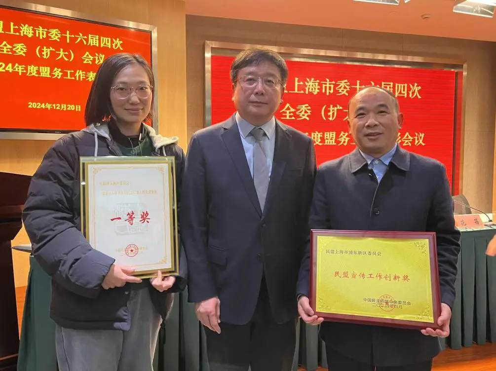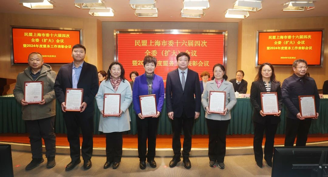 在本次表彰大会上,我校民盟委员会获得多项集体和个人奖励。校民盟委员会获2024年度民盟上海市委社情民意信息工作先进集体一等奖表彰,参政议政成绩继续位居民盟各基层单位前列;盟员肖本华获2024年度民盟上海市委盟务工作卓越奖,盟员胡乃静、薄海豹、王东明、丁小云、华蓉晖、曹春玉获2024年度民盟上海市委盟务工作积极分子。同时,民盟上海市委为校民盟委员会成立二十周年颁发特别贺信,激励学校民盟组织围绕中心服务大局,为实现学校高质量发展作出更大贡献。