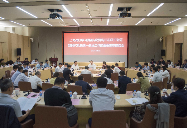 10月8日,市委统战部和市教卫工作党委在同济大学联合召开上海高校学习贯彻习近平总书记关于做好新时代党的统一战线工作的重要思想座谈会。市委常委、统战部部长陈通出席并讲话。市教卫工作党委书记沈炜主持会议并介绍高校统战工作情况。复旦大学、上海交通大学、同济大学等六所高校在会上作交流发言。校党委副书记文选才围绕“聚焦‘三个牢牢把握’推进党外代表人士建言献策取得新成效”作交流发言。