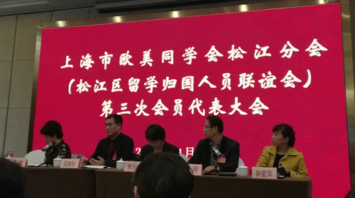 2018年11月30日下午,上海市欧美同学会松江分会(松江区留学归国人员联谊会)举行第三次会员代表大会。会议听取了上海市欧美同学会松江分会(松江区留学归国人员联谊会)第二届理事会工作报告,选举产生了第三届理事会成员。我校民进成员、信息管理学院副院长郑飞,国际经贸学院常务副院长毕玉江当选为理事。